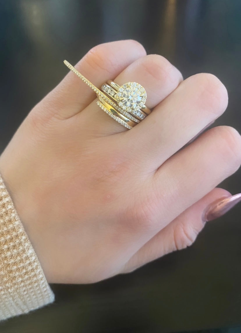 Each diamond is held to a set of four standards: cut, color, clarity, and carat which determine the overall rating, aesthetic, and diamond quality which are explained below. Jacqueline hand selects each stone for her clients, working collaboratively to find the perfect balance of quality and size.